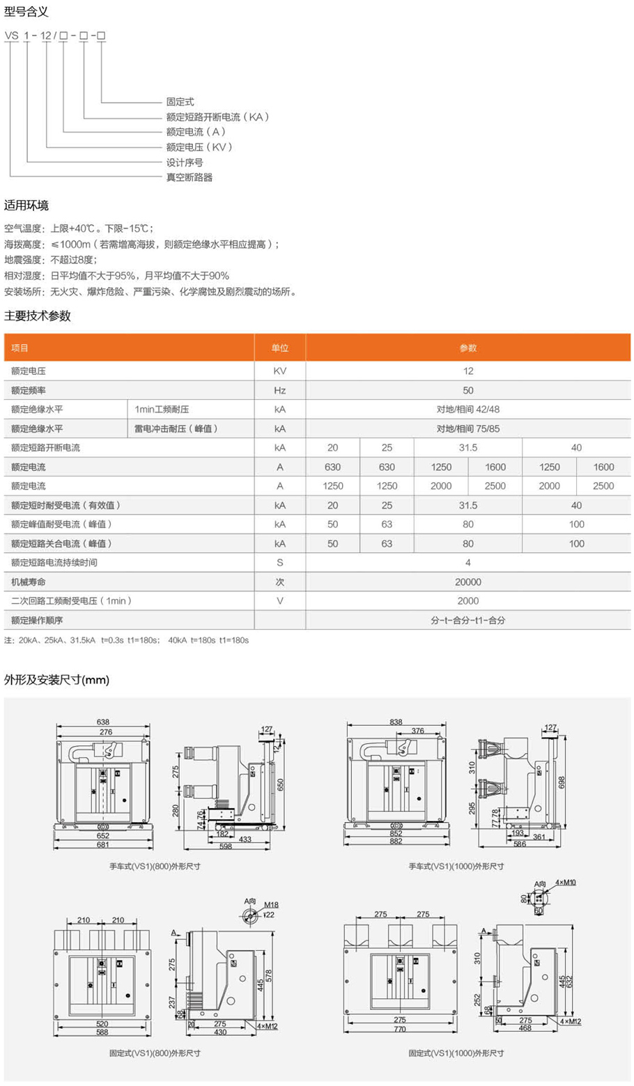VS1-12型戶內高壓真空斷路器,系三相交流50Hz額定電壓為12KV電力系統的戶內開關設備,作為電網設備、工礦企業動力設備的保護和控制單元。適用于要求在額定工作電流下的頻繁操作,或多交開斷短路電流的場所。