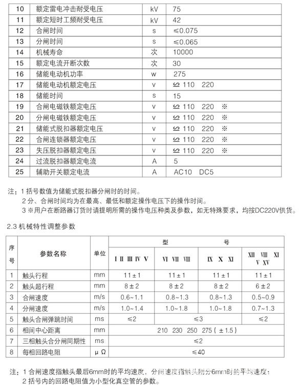 8每相回路電阻 Ω≤30(40)注:合閘速度指觸頭最后6mm時的平均速度.