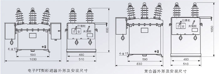 4)若加裝電壓互感器、自動(dòng)重合控制器、自動(dòng)分段控制器,可實(shí)現(xiàn)配電保護(hù)自動(dòng)化和“四遙” (遙測、遙信、遙控、遙調(diào))功能加裝了復(fù)合控制器(消除合閘涌流)