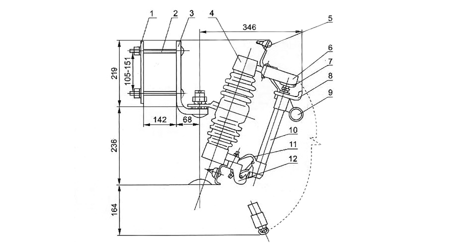 跌落式熔斷器在正常運行時,熔絲管借助熔絲張緊后形成閉合位置。當系統發生故障時,故障電流時熔絲迅速熔斷,并形成電弧,消弧管受電弧灼熱,分解出大量的氣體,使館內形成很高壓力,并沿管道形成縱吹,電弧被迅速拉長而熄滅。熔絲熔斷后,下部動觸頭失去張力二下翻,鎖緊機械,釋放熔絲管,熔絲管跌落,形成明顯的開斷位置。當需要拉負荷時,用絕緣桿拉開動觸頭,此時主動、靜動觸頭仍然接觸,繼續用絕緣桿拉動觸頭,輔助觸頭也分離,在輔助觸頭之間產生電弧,電弧在滅罩狹縫中被拉長,同時滅弧罩產生氣體,在電流過零時,將電弧熄滅。