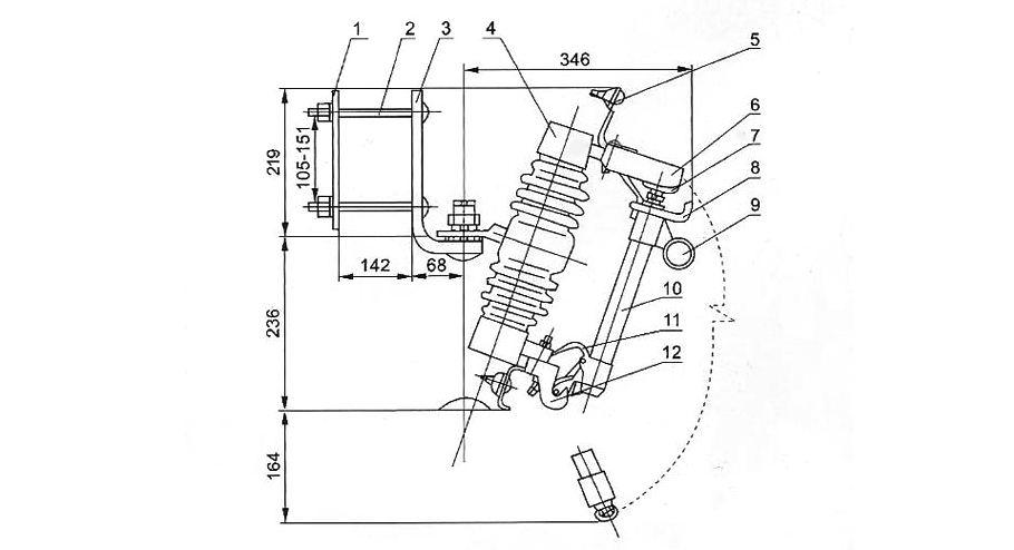 跌落式熔斷器在正常運(yùn)行時,熔絲管借助熔絲張緊后形成閉合位置。當(dāng)系統(tǒng)發(fā)生故障時,故障電流時熔絲迅速熔斷,并形成電弧,消弧管受電弧灼熱,分解出大量的氣體,使館內(nèi)形成很高壓力,并沿管道形成縱吹,電弧被迅速拉長而熄滅。熔絲熔斷后,下部動觸頭失去張力二下翻,鎖緊機(jī)械,釋放熔絲管,熔絲管跌落,形成明顯的開斷位置。當(dāng)需要拉負(fù)荷時,用絕緣桿拉開動觸頭,此時主動、靜動觸頭仍然接觸,繼續(xù)用絕緣桿拉動觸頭,輔助觸頭也分離,在輔助觸頭之間產(chǎn)生電弧,電弧在滅罩狹縫中被拉長,同時滅弧罩產(chǎn)生氣體,在電流過零時,將電弧熄滅。
