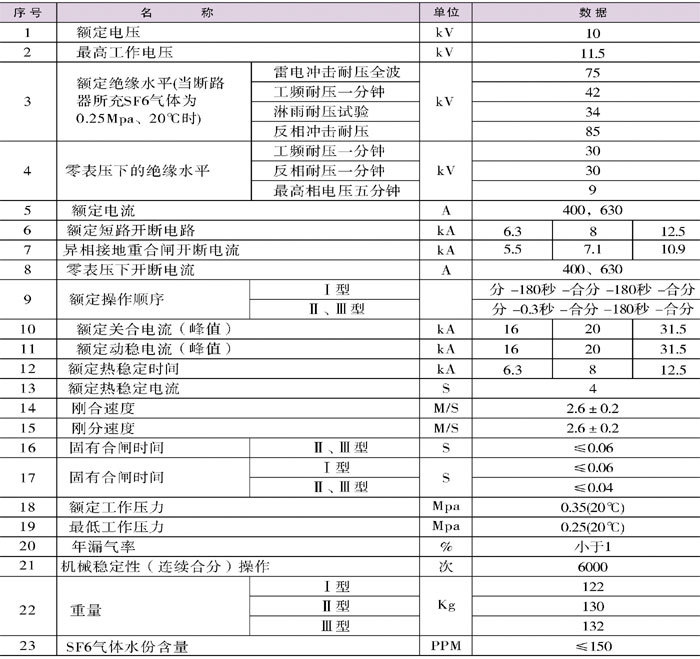 LW3-10 Ⅰ ⅡⅢ型戶外高壓六氟硫斷路器(以下簡稱“ⅠⅡⅢ型斷路器”)是以六氟化硫氣體作為滅弧和絕緣介質的新型戶外高壓電器。其滅弧室采用自能旋弧滅弧原理,操動機構分(Ⅰ型)手動儲能彈簧操動機構。 (Ⅱ型)電動機儲能彈簧操動機構,(Ⅲ型)直流電磁操動機構叁種,各種操動機構均與斷路器本體完善地組合成一個整體。