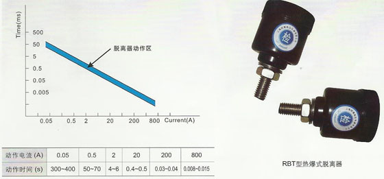 在我國(guó)電網(wǎng)中,35KV及以下電力系統(tǒng)多為中性點(diǎn)非有效接地系統(tǒng),這與國(guó)外電網(wǎng)中性點(diǎn)直接有效接地系統(tǒng)不同,避雷器故障電流多為小電流,鑒于該特點(diǎn)并借鑒國(guó)外公司(如美國(guó)GE公司,瑞典ABB公司,德國(guó)西門子公司等知名公司)熱爆式脫離器的優(yōu)點(diǎn),研制開發(fā)了RBT-3,RBT-4型高效新型脫離器,其有如下的特點(diǎn):