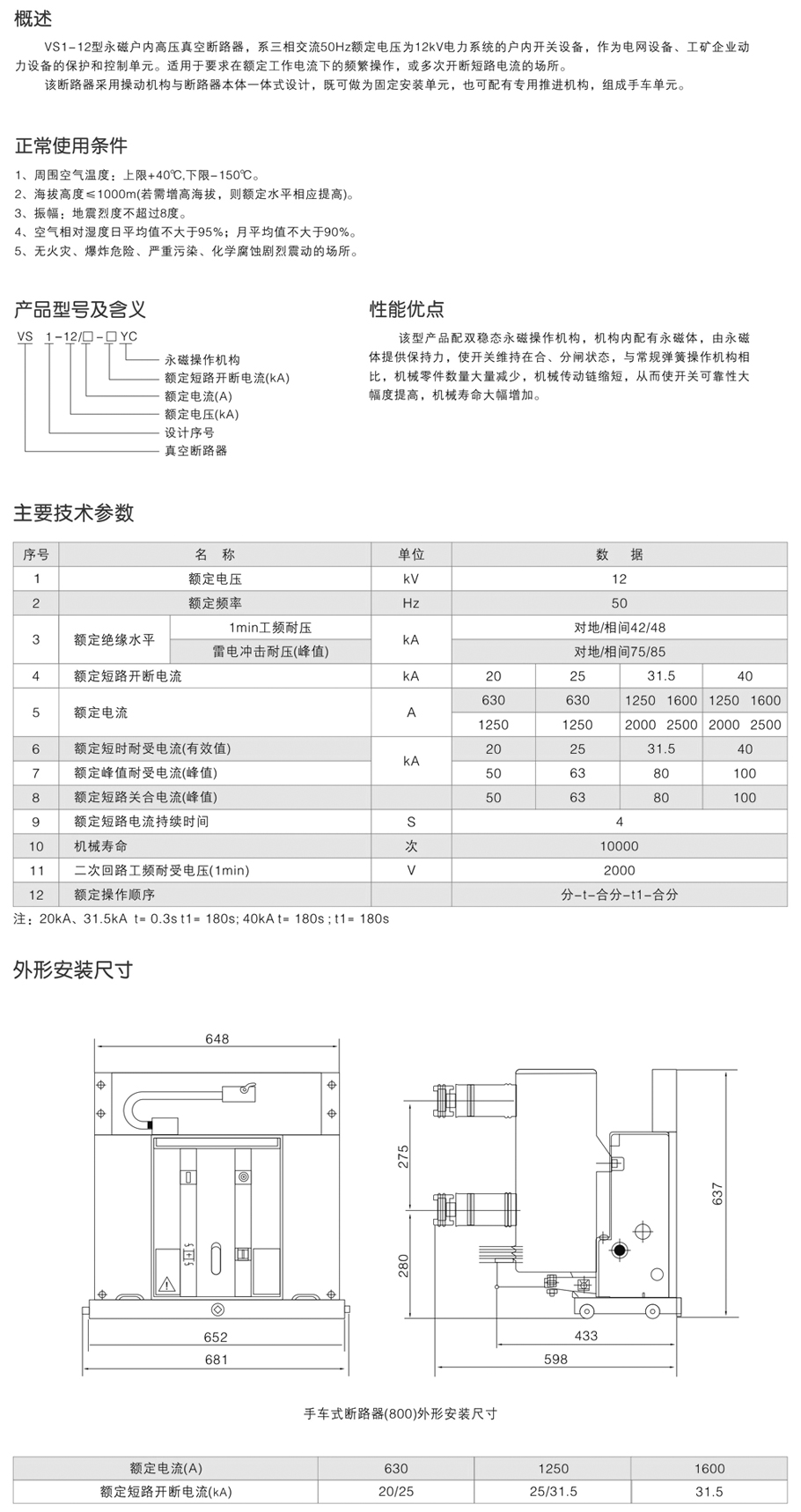 VS1-12永磁真空斷路器