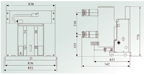 該斷路器采用操動(dòng)機(jī)構(gòu)與斷路器本體一體式設(shè)計(jì),既可做為固定安裝單元,也可配有專用推進(jìn)機(jī)構(gòu),組成手車單元作用。